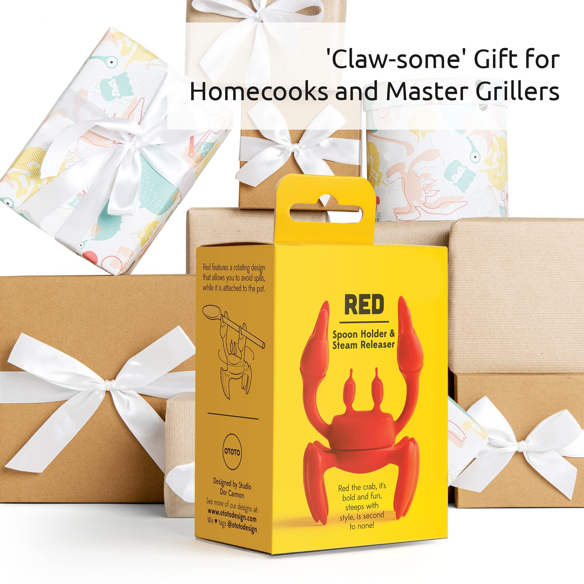 FUN MEETS FUNCTION - There's nothing left to do with simmering pots of soup or boiling liquids with this durable silicone utensil holder and steam release. Watch his legs hold the lid, where he'll chill like a villain until you're done cooking! This trustworthy silicone spoon rest won't rock, fade, or stick, making cooking a breeze. Make meal prep more fun with Red the Crab!